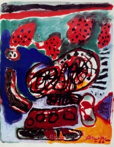 Ti offriamo una riproduzione artigianale su tela dell'opera famosa 'Composizione' di Corneille, dal Museo delle Riproduzioni.