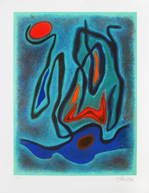 Ti offriamo una riproduzione artigianale su tela dell'opera famosa 'Composizione su fondo verde' di Gustave Singier, dal Museo delle Riproduzioni.