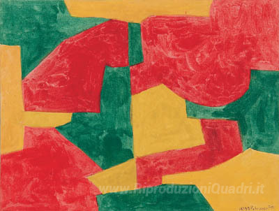 Ti offriamo una riproduzione artigianale su tela dell'opera famosa 'Composizione verte, rouge et jaune' di Serge Poliakoff, dal Museo delle Riproduzioni.