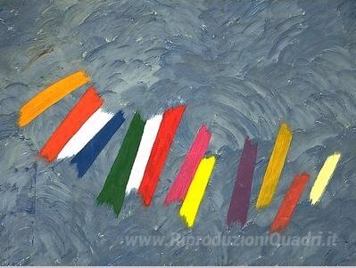 Ti offriamo una riproduzione artigianale su tela dell'opera famosa 'Concerto' di Jack Bush, dal Museo delle Riproduzioni.