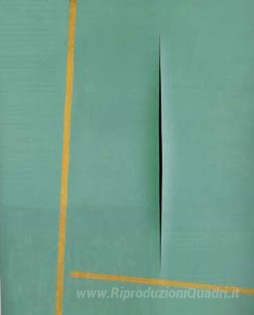Ti offriamo una riproduzione artigianale su tela dell'opera famosa 'Concetto Spatiale' di Lucio Fontana, dal Museo delle Riproduzioni.