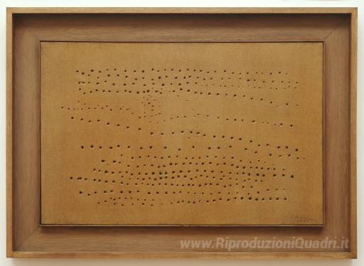 Ti offriamo una riproduzione artigianale su tela dell'opera famosa 'Concetto Spatiale' di Lucio Fontana, dal Museo delle Riproduzioni.
