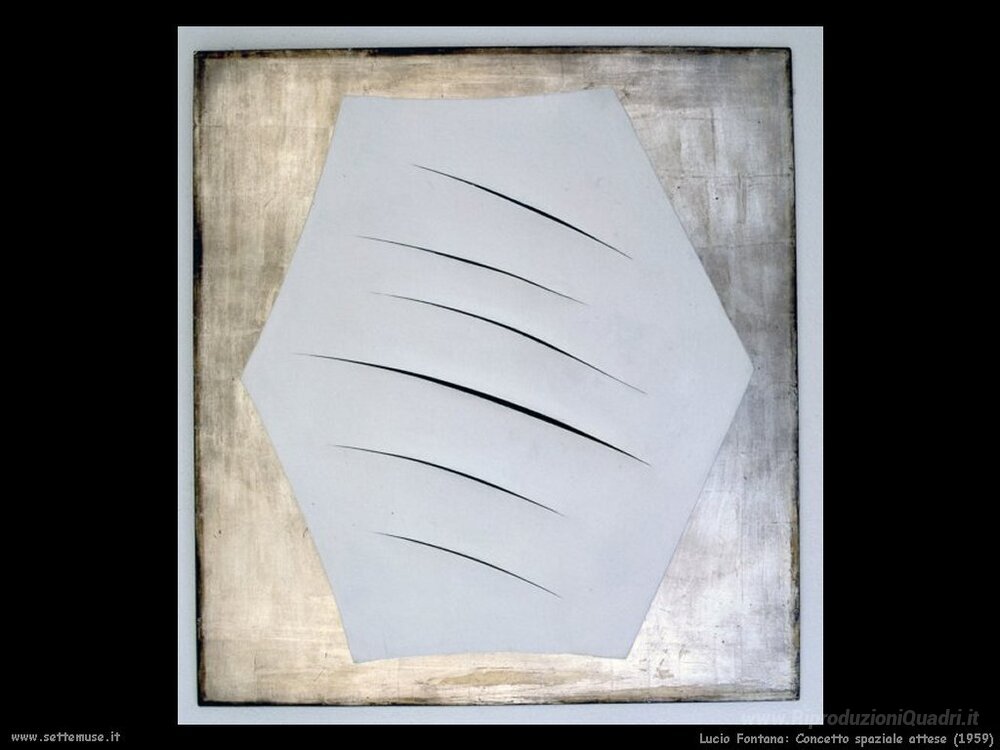 Ti offriamo una riproduzione artigianale su tela dell'opera famosa 'Concetto Spatiale' di Lucio Fontana, dal Museo delle Riproduzioni.