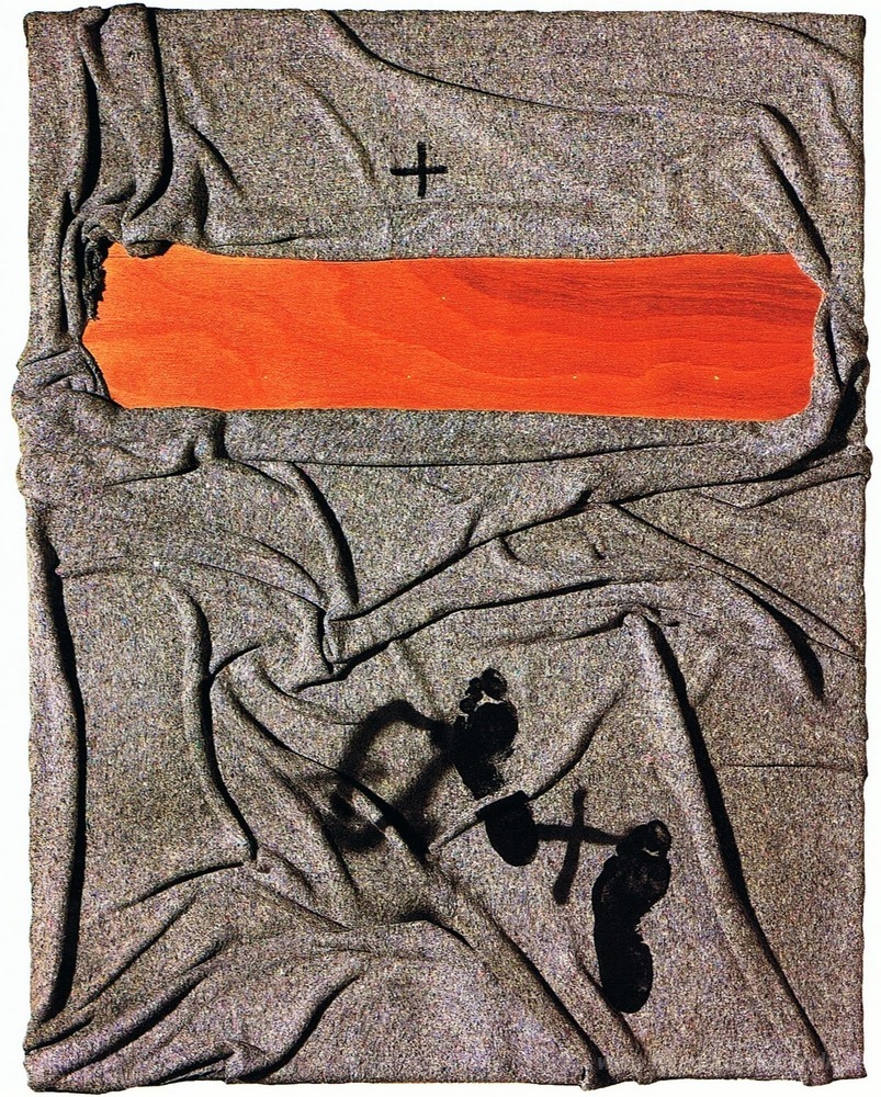 Ti offriamo una riproduzione artigianale su tela dell'opera famosa 'Coperta con le tracce' di Antoni Tapies, dal Museo delle Riproduzioni.
