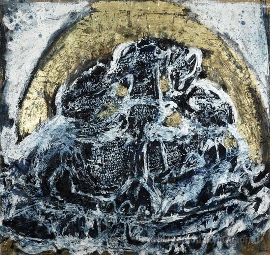 Ti offriamo una riproduzione artigianale su tela dell'opera famosa 'Cosmogonie' di Horia Damian, dal Museo delle Riproduzioni.