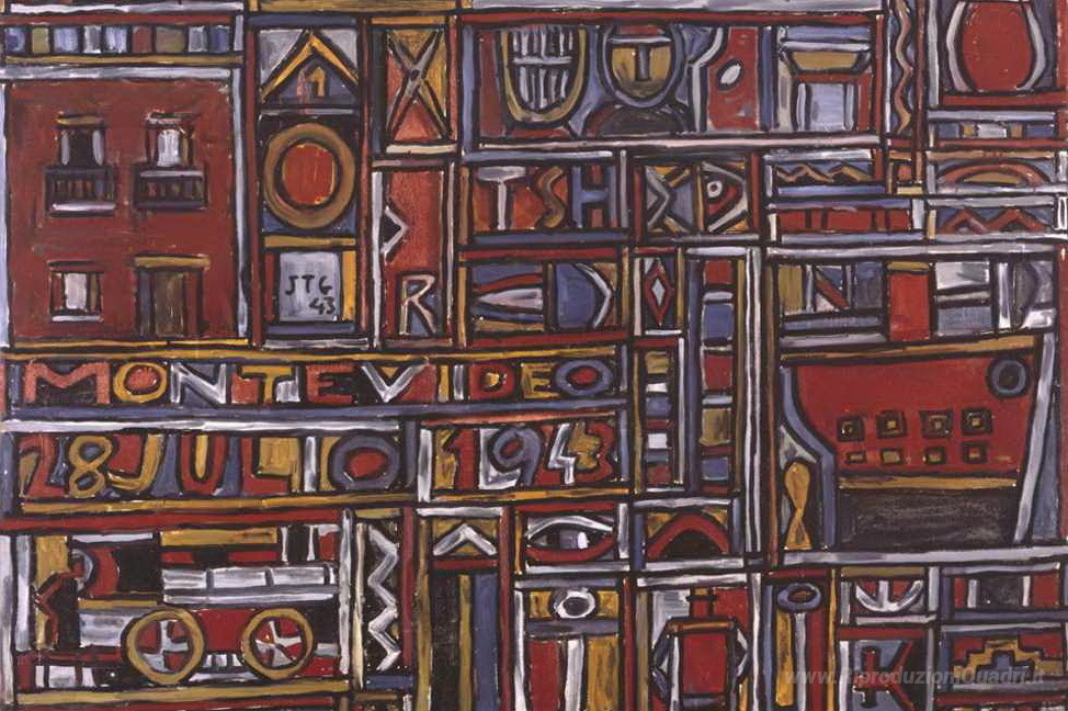 Ti offriamo una riproduzione artigianale su tela dell'opera famosa 'Costruttiva Composizione' di Joaquin Torres Garcia, dal Museo delle Riproduzioni.