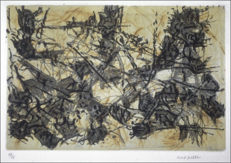 Ti offriamo una riproduzione artigianale su tela dell'opera famosa 'Costruzioni chimériques' di Jean-Paul Riopelle, dal Museo delle Riproduzioni.