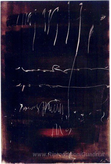 Ti offriamo una riproduzione artigianale su tela dell'opera famosa '?criture 10.2.63' di Jean Degottex, dal Museo delle Riproduzioni.