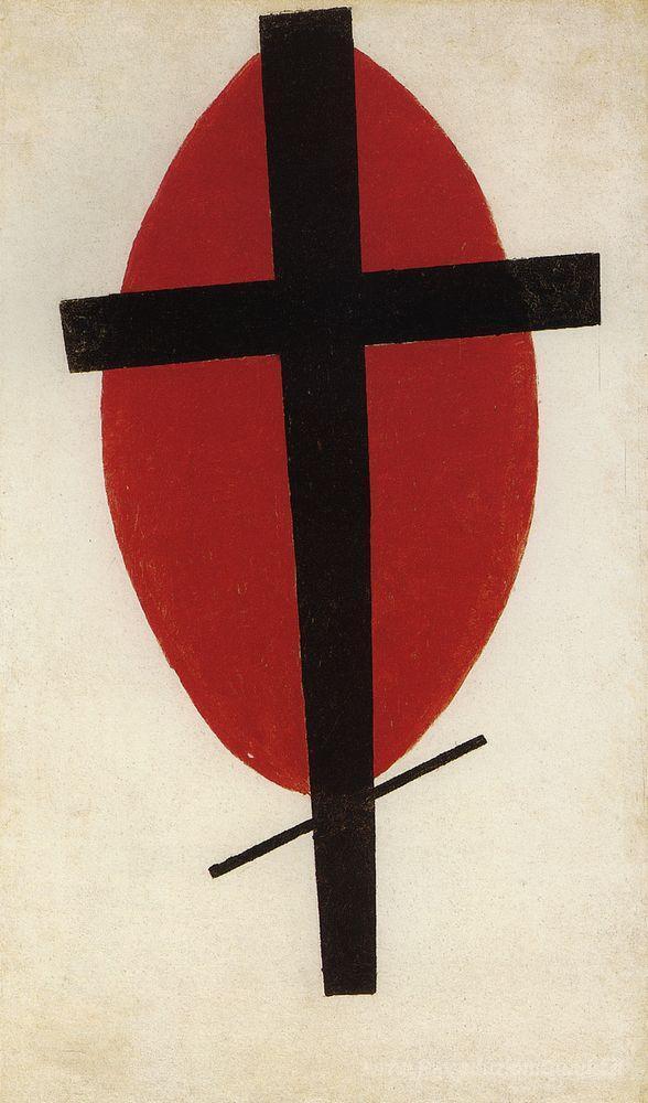 Ti offriamo una riproduzione artigianale su tela dell'opera famosa 'Croce nera su un ovale rosso' di Kazimir Malevich, dal Museo delle Riproduzioni.