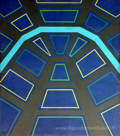 Ti offriamo una riproduzione artigianale su tela dell'opera famosa 'Cupola Verde' di Tess Jaray, dal Museo delle Riproduzioni.