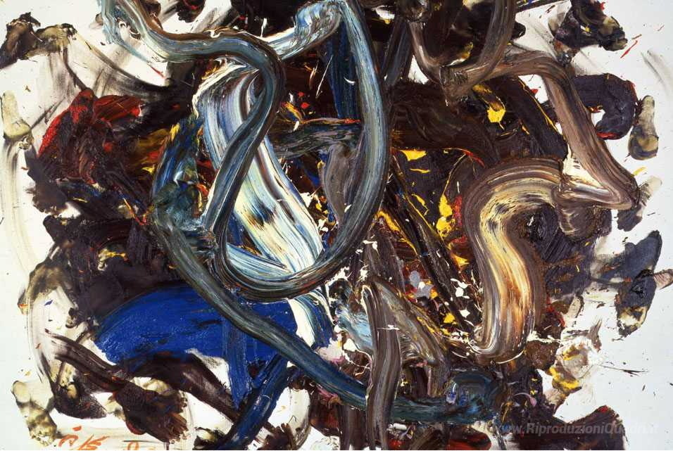 Ti offriamo una riproduzione artigianale su tela dell'opera famosa 'Danza del Drago a Due Teste' di Kazuo Shiraga, dal Museo delle Riproduzioni.