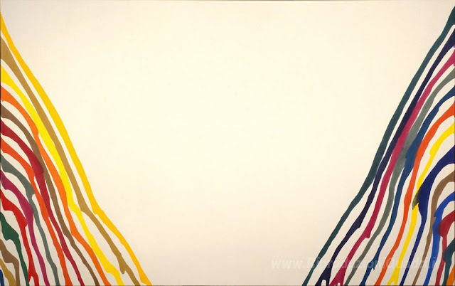 Ti offriamo una riproduzione artigianale su tela dell'opera famosa 'Delta Theta' di Morris Louis, dal Museo delle Riproduzioni.