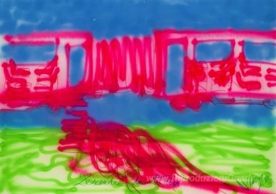 Ti offriamo una riproduzione artigianale su tela dell'opera famosa 'Descendre du treno' di Jean Messagier, dal Museo delle Riproduzioni.