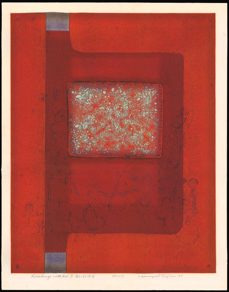 Ti offriamo una riproduzione artigianale su tela dell'opera famosa 'Dialogo Con Rosso (B)' di Hiroyuki Tajima, dal Museo delle Riproduzioni.