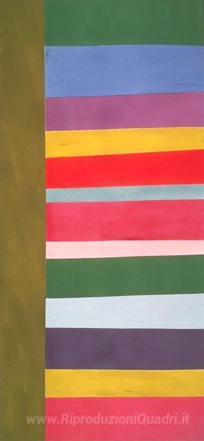 Ti offriamo una riproduzione artigianale su tela dell'opera famosa 'Diffusione alto' di Jack Bush, dal Museo delle Riproduzioni.