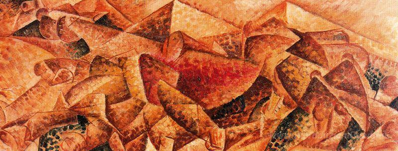 Ti offriamo una riproduzione artigianale su tela dell'opera famosa 'Dinamismo plastico: Cavallo + Casa' di Umberto Boccioni, dal Museo delle Riproduzioni.