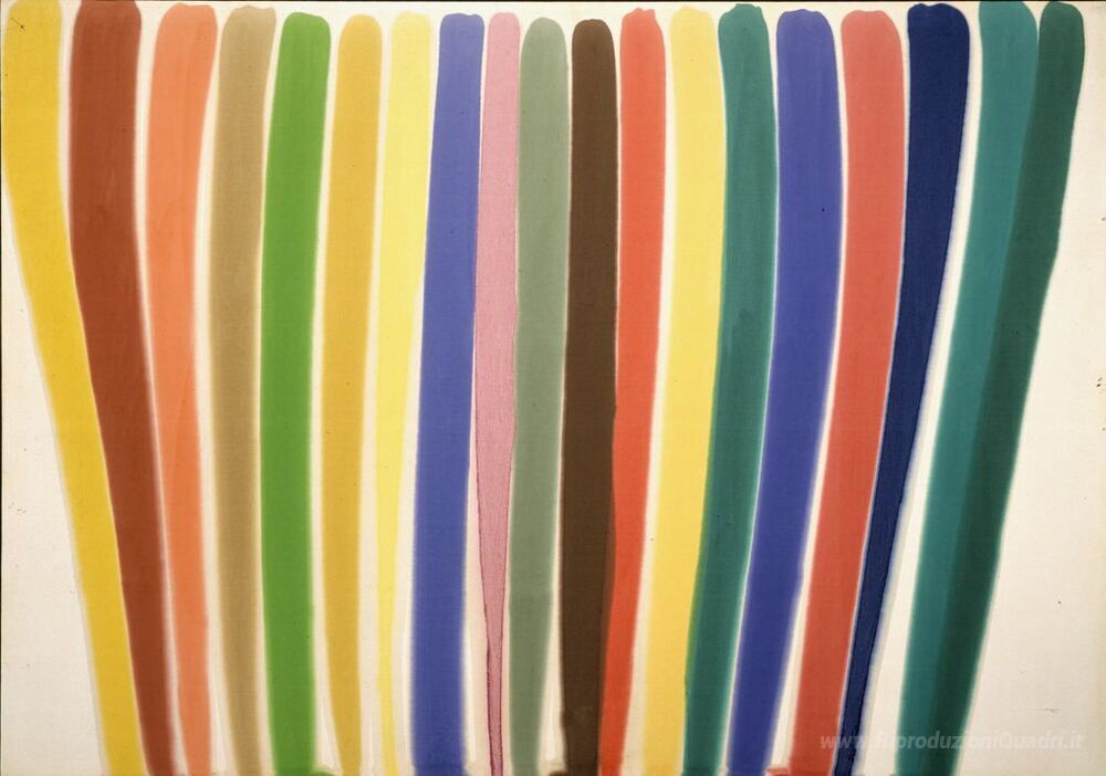 Ti offriamo una riproduzione artigianale su tela dell'opera famosa 'Dove' di Morris Louis, dal Museo delle Riproduzioni.