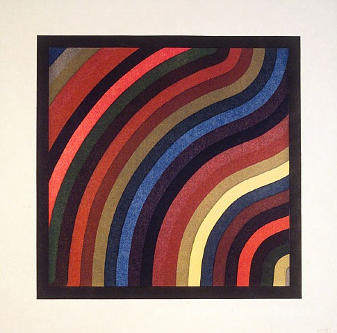 Ti offriamo una riproduzione artigianale su tela dell'opera famosa 'Due bande ondulate Centimetro a Colori' di Sol LeWitt, dal Museo delle Riproduzioni.