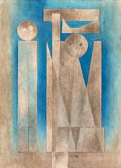 Ti offriamo una riproduzione artigianale su tela dell'opera famosa 'Duo' di Carlos Merida, dal Museo delle Riproduzioni.