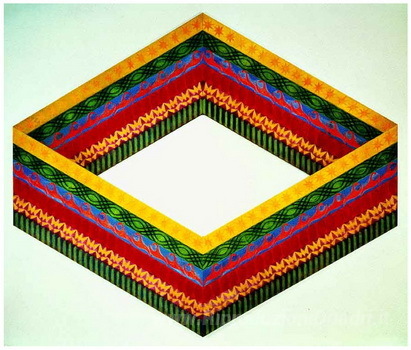 Ti offriamo una riproduzione artigianale su tela dell'opera famosa 'Enclosure Banded' di Philip Taaffe, dal Museo delle Riproduzioni.