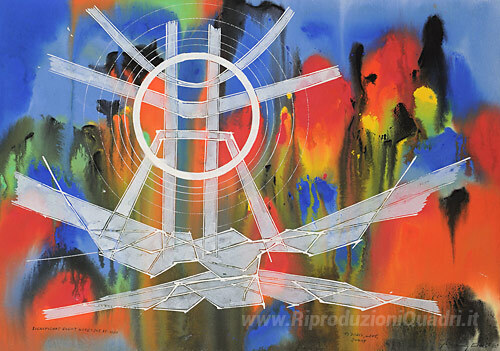 Ti offriamo una riproduzione artigianale su tela dell'opera famosa 'Evento signifiant Nota' di Jimmy Ernst, dal Museo delle Riproduzioni.