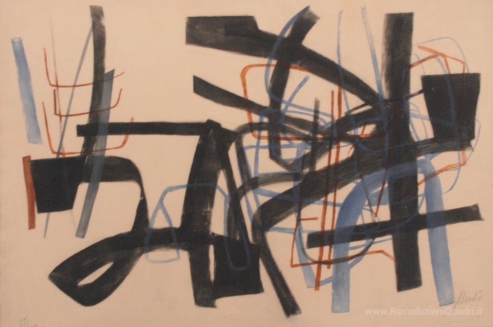 Ti offriamo una riproduzione artigianale su tela dell'opera famosa 'Farbradierung VI' di Fritz Winter, dal Museo delle Riproduzioni.