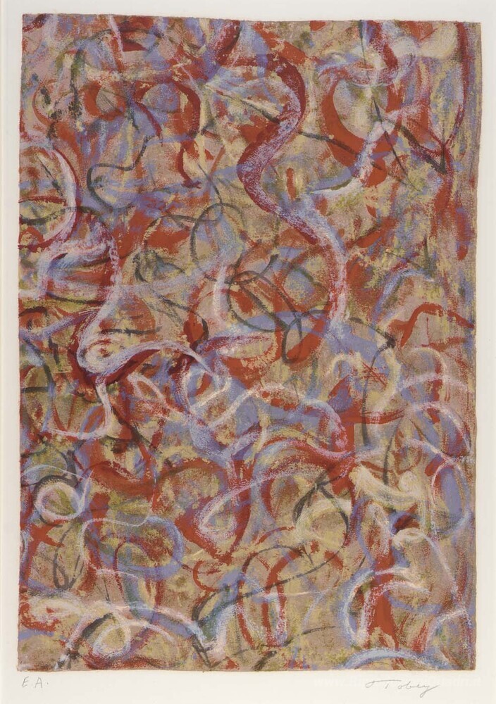 Ti offriamo una riproduzione artigianale su tela dell'opera famosa 'Fiamma di colori' di Mark Tobey, dal Museo delle Riproduzioni.