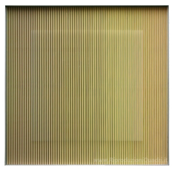 Ti offriamo una riproduzione artigianale su tela dell'opera famosa 'Fisicromía 2250' di Carlos Cruz-Diez, dal Museo delle Riproduzioni.