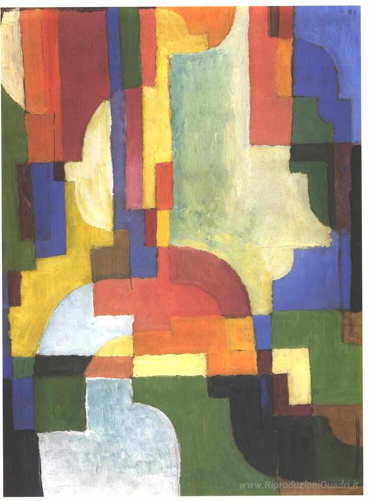 Ti offriamo una riproduzione artigianale su tela dell'opera famosa 'Forme Colorito' di August Macke, dal Museo delle Riproduzioni.