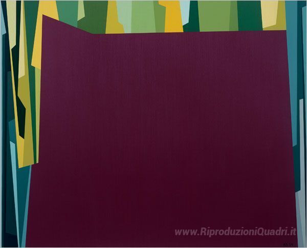 Ti offriamo una riproduzione artigianale su tela dell'opera famosa 'Forme di incastro (Big Magenta Con Verde)' di Karl Benjamin, dal Museo delle Riproduzioni.