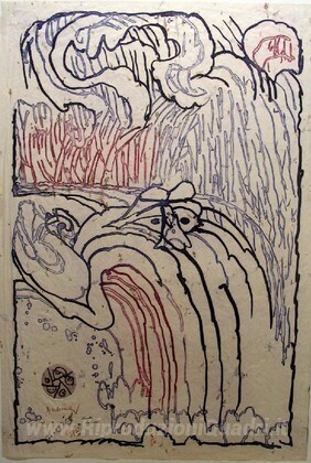 Ti offriamo una riproduzione artigianale su tela dell'opera famosa 'Free Fall (Chute libre)' di Pierre Alechinsky, dal Museo delle Riproduzioni.