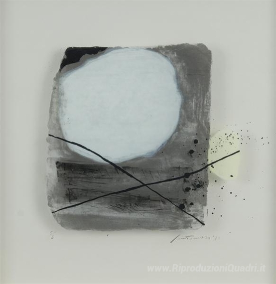 Ti offriamo una riproduzione artigianale su tela dell'opera famosa 'Fuori il giallo' di Giuseppe Santomaso, dal Museo delle Riproduzioni.