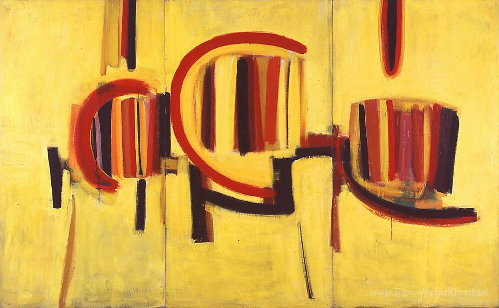 Ti offriamo una riproduzione artigianale su tela dell'opera famosa 'Giallo Trittico' di Terry Frost, dal Museo delle Riproduzioni.