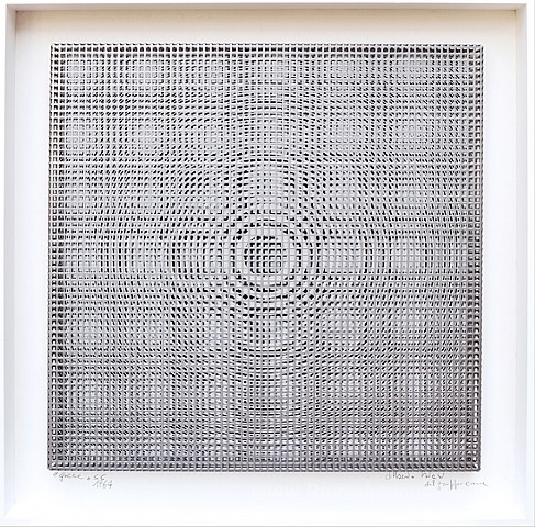 Ti offriamo una riproduzione artigianale su tela dell'opera famosa 'Gocce in gabbia' di Alberto Biasi, dal Museo delle Riproduzioni.