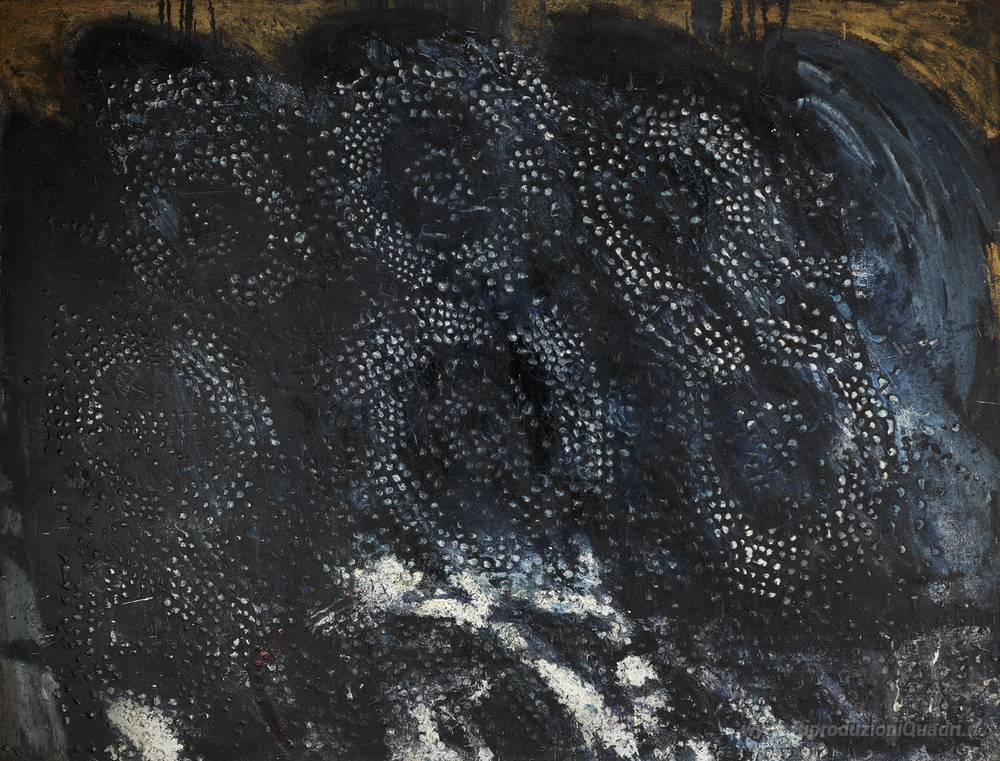 Ti offriamo una riproduzione artigianale su tela dell'opera famosa 'Grande costellazione bleue' di Horia Damian, dal Museo delle Riproduzioni.