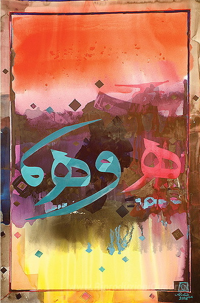 Ti offriamo una riproduzione artigianale su tela dell'opera famosa 'Huwa' di Abdul Qader Al Raes, dal Museo delle Riproduzioni.