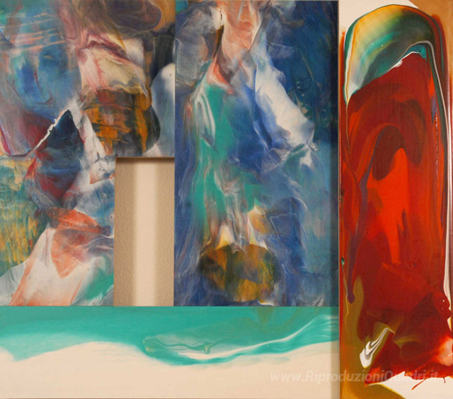 Ti offriamo una riproduzione artigianale su tela dell'opera famosa 'Icona' di Sam Gilliam, dal Museo delle Riproduzioni.