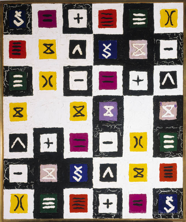 Ti offriamo una riproduzione artigianale su tela dell'opera famosa 'Il Grande Mistero II' di Alfred Jensen, dal Museo delle Riproduzioni.
