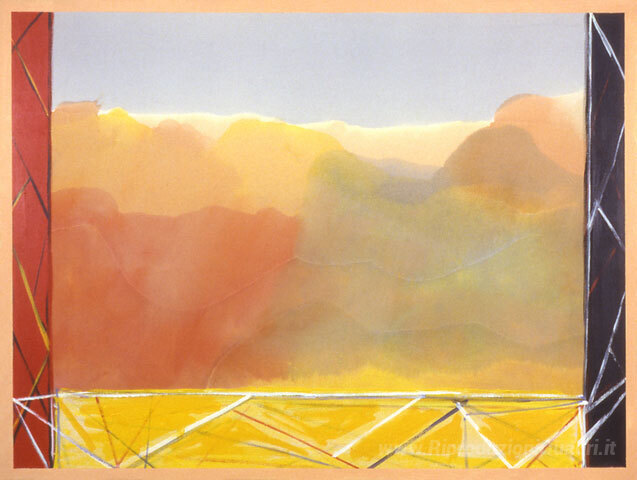 Ti offriamo una riproduzione artigianale su tela dell'opera famosa 'Il Ponte Giallo' di Ronnie Landfield, dal Museo delle Riproduzioni.