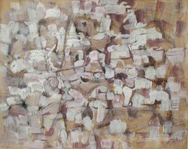 Ti offriamo una riproduzione artigianale su tela dell'opera famosa 'Il Villaggio immaginario' di Mark Tobey, dal Museo delle Riproduzioni.