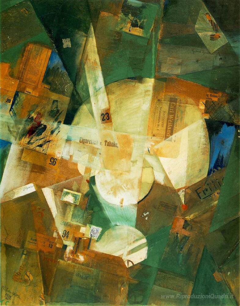 Ti offriamo una riproduzione artigianale su tela dell'opera famosa 'Immagine con Light Center' di Kurt Schwitters, dal Museo delle Riproduzioni.