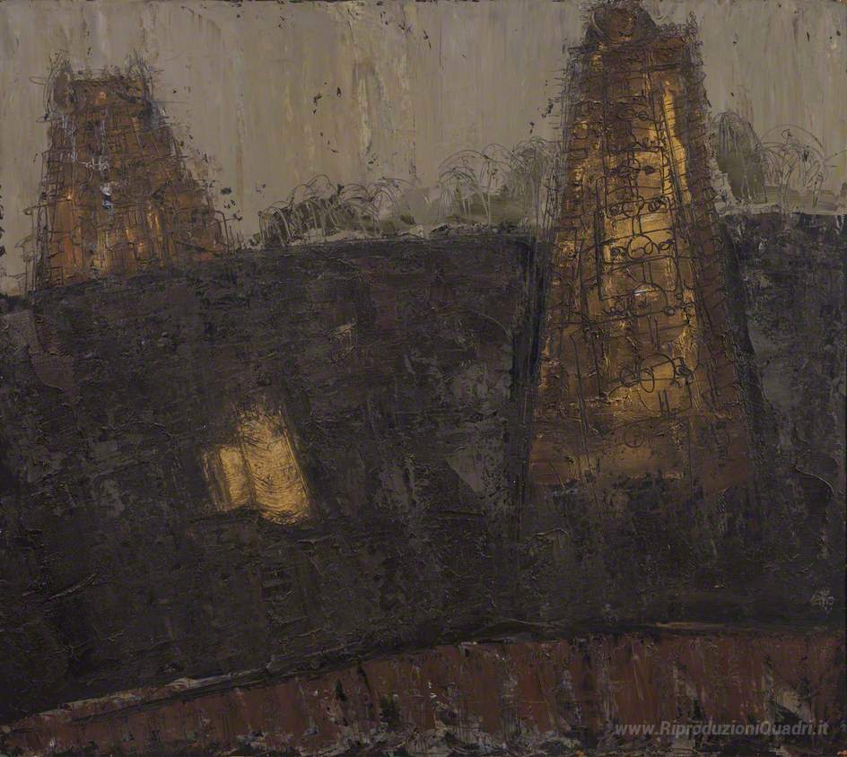 Ti offriamo una riproduzione artigianale su tela dell'opera famosa 'India, templi No.1 (Sri Ranganathaswamy Tempio, Tiruchirapalli)' di William Congdon, dal Museo delle Riproduzioni.