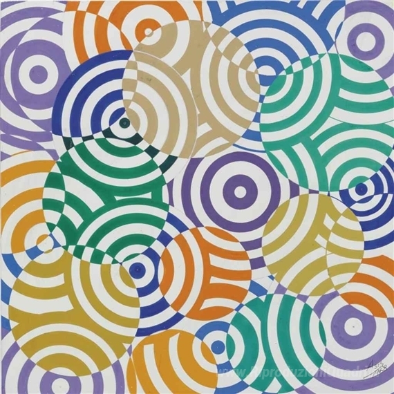 Ti offriamo una riproduzione artigianale su tela dell'opera famosa 'Interferenze policromie (n 636)' di Antonio Asis, dal Museo delle Riproduzioni.