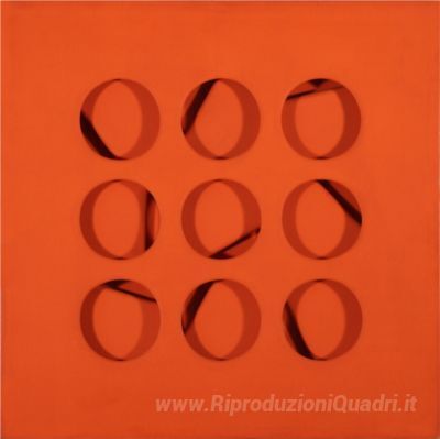 Ti offriamo una riproduzione artigianale su tela dell'opera famosa 'Intersuperficie curva rossa' di Paolo Scheggi, dal Museo delle Riproduzioni.