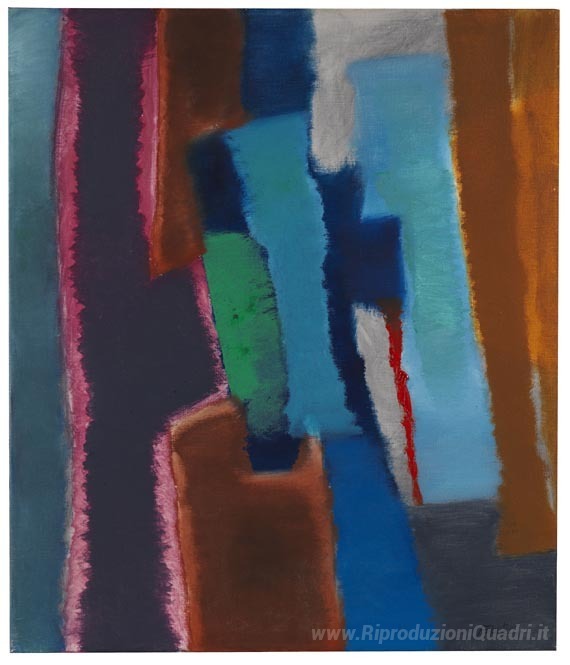 Ti offriamo una riproduzione artigianale su tela dell'opera famosa 'Kommendes Blau' di Fritz Winter, dal Museo delle Riproduzioni.