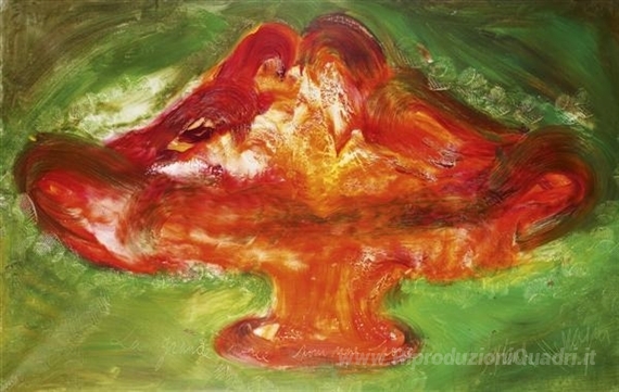 Ti offriamo una riproduzione artigianale su tela dell'opera famosa 'La grande rosée pour une porcelaine de septembre' di Jean Messagier, dal Museo delle Riproduzioni.