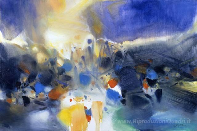 Ti offriamo una riproduzione artigianale su tela dell'opera famosa 'La vie qui les nuages ??anime' di Chu Teh-Chun, dal Museo delle Riproduzioni.