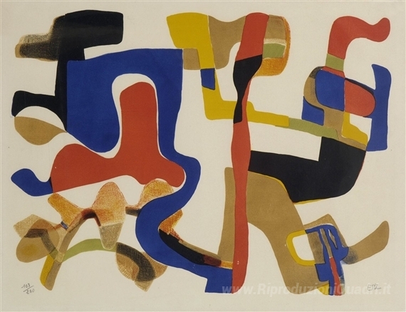 Ti offriamo una riproduzione artigianale su tela dell'opera famosa 'L`Accueil' di Maurice Esteve, dal Museo delle Riproduzioni.