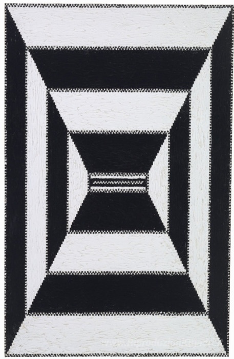Ti offriamo una riproduzione artigianale su tela dell'opera famosa 'L'Acrobatic Rettangolo, ogni sei' di Alfred Jensen, dal Museo delle Riproduzioni.