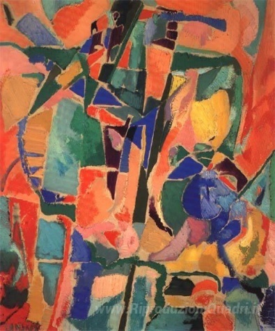 Ti offriamo una riproduzione artigianale su tela dell'opera famosa 'L'Arque en ciel et L'Arlequin' di Andre Lanskoy, dal Museo delle Riproduzioni.
